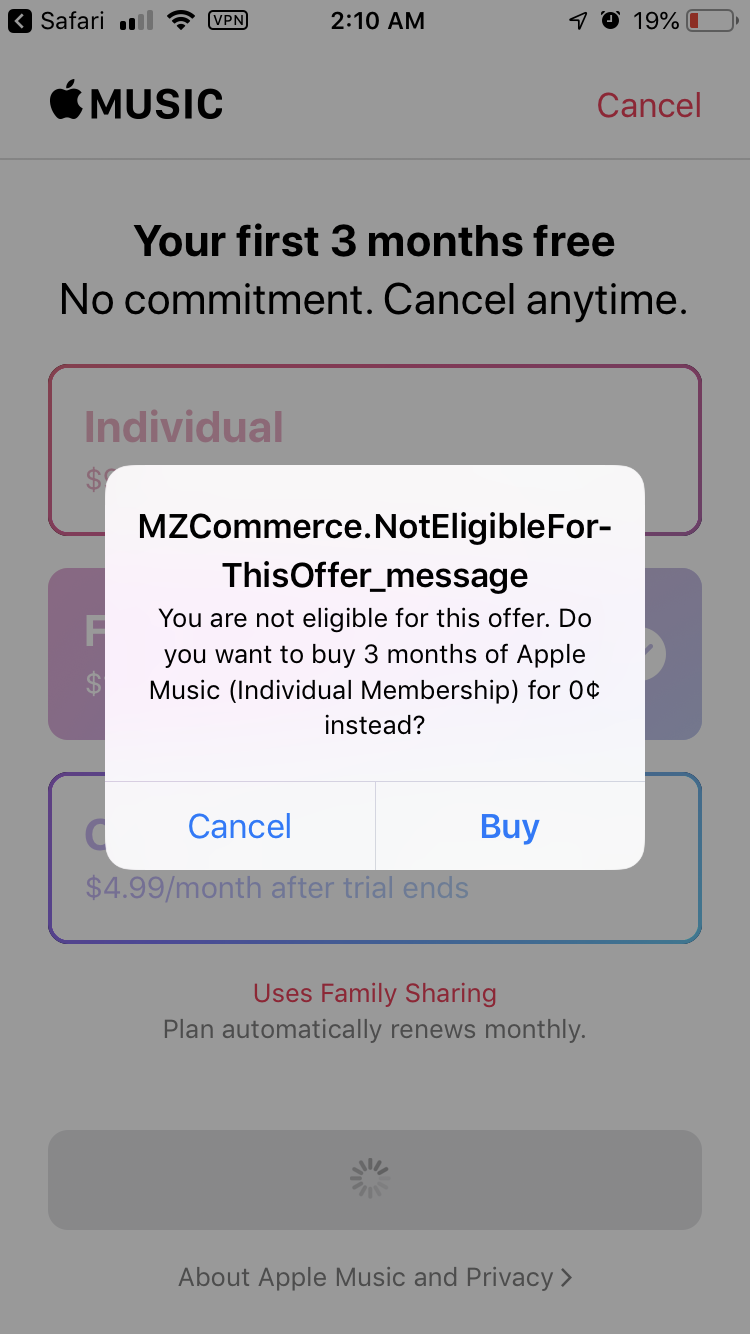 Also, my location is Cupertino, same as Apples HQ - I doubt that’s a restricted region for Apple Music. This is a bug, plain and simple unless there is evidence to the contrary