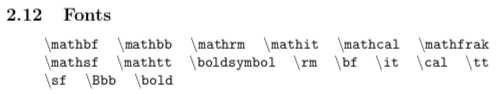 About LaTeX and MathML support in Pages, Numbers, Keynote and iBooks Author. There is a direct link on that page to the blahtex PDF manual, whose font commands appear below: