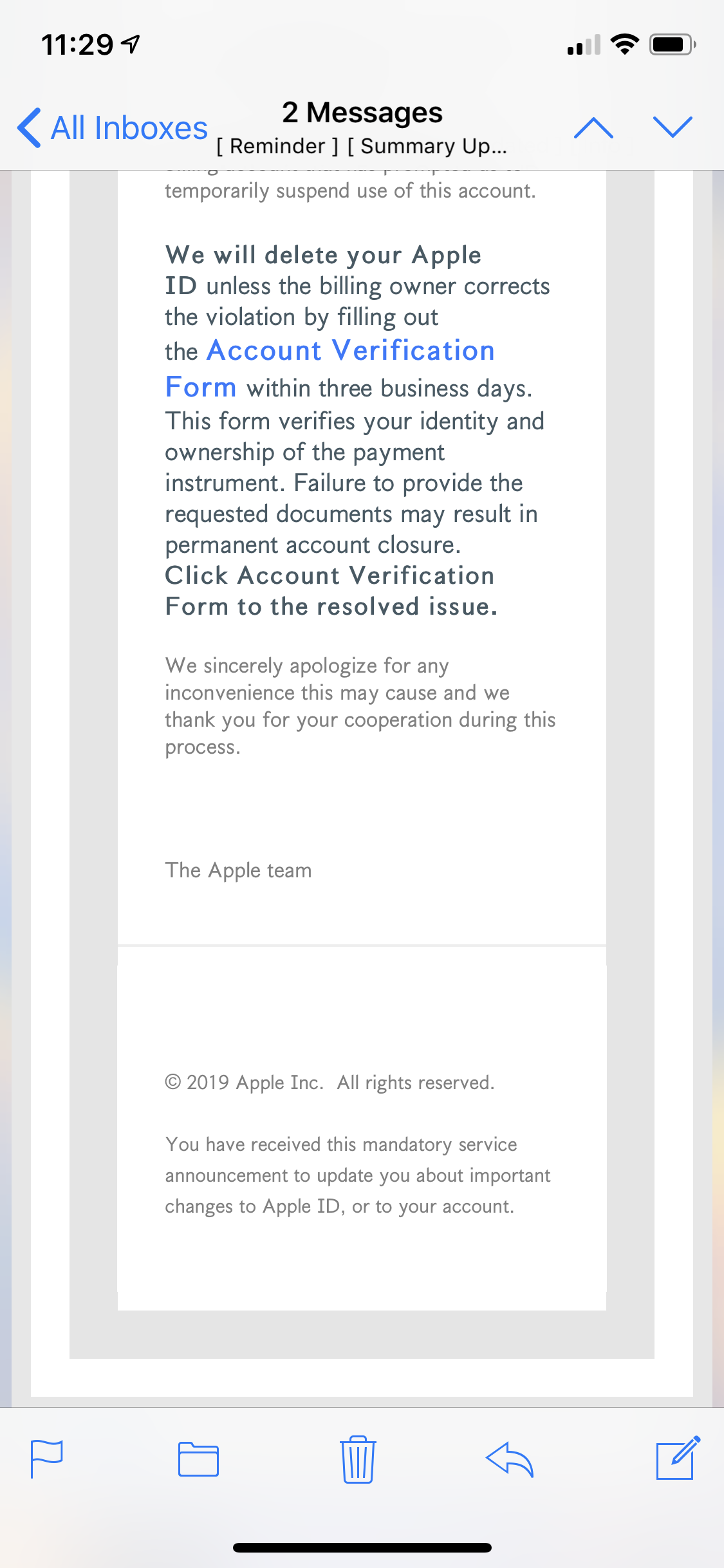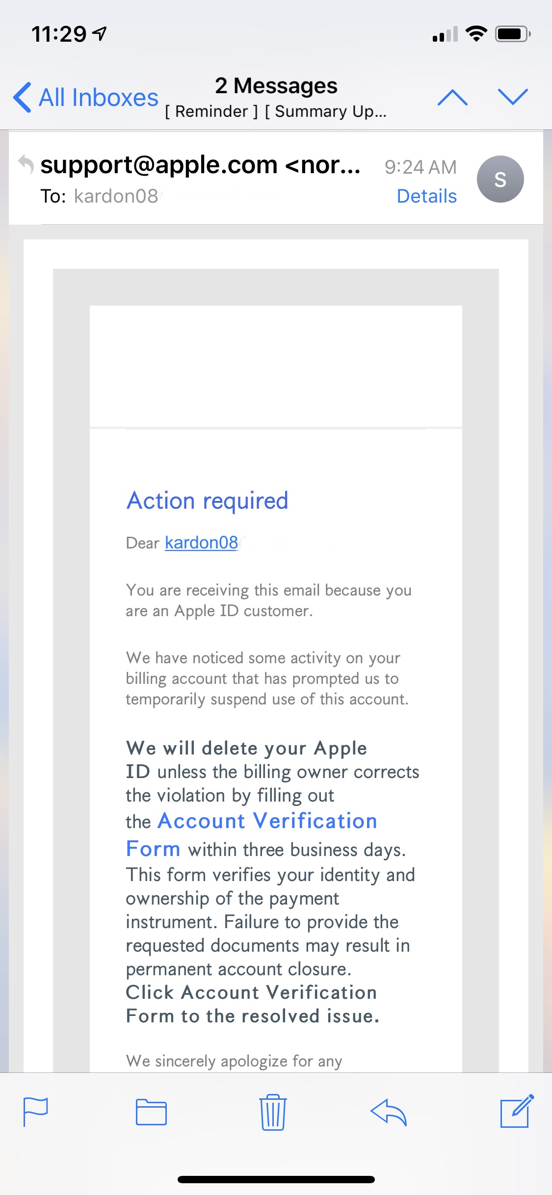 I recently received an email from Apple support saying that I had to fill out an Account Verification Form if I wanted to keep my Apple ID active. How do I know this is a real Apple email and not someone trying to get my information?