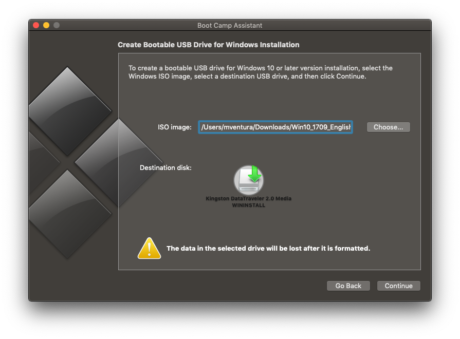 Once you have your full disk space in macOS, re-run BCA and try to install Windows. You can skip the Create+Download steps.