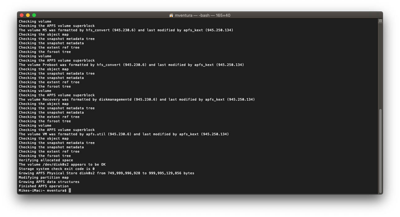 2:                 Apple_APFS Container disk1         750.0 GB   disk0s2