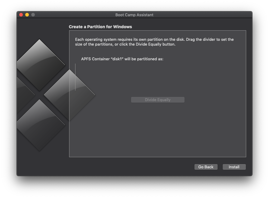 Once you have your full disk space in macOS, re-run BCA and try to install Windows. You can skip the Create+Download steps.