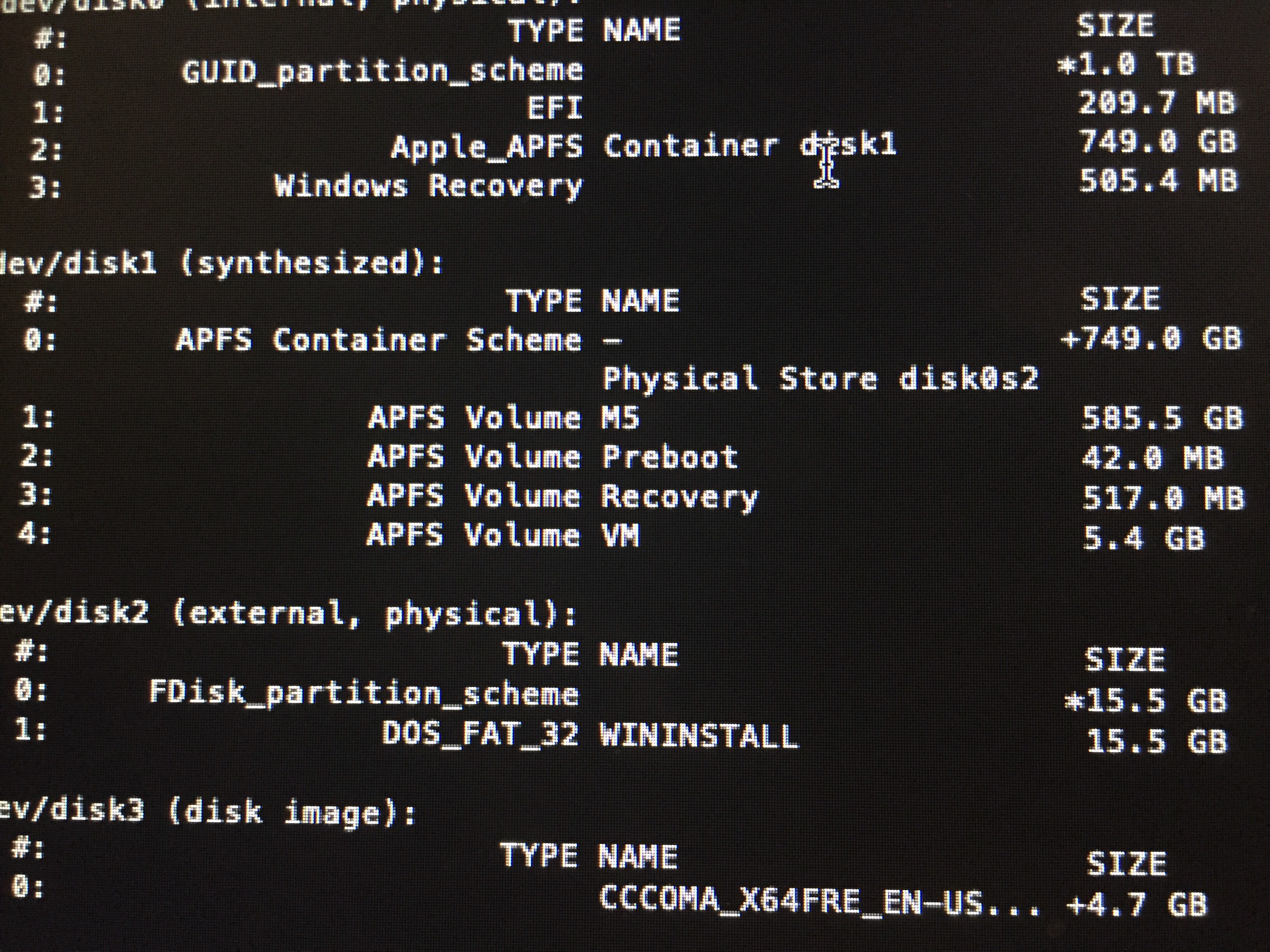diskutil list disk0