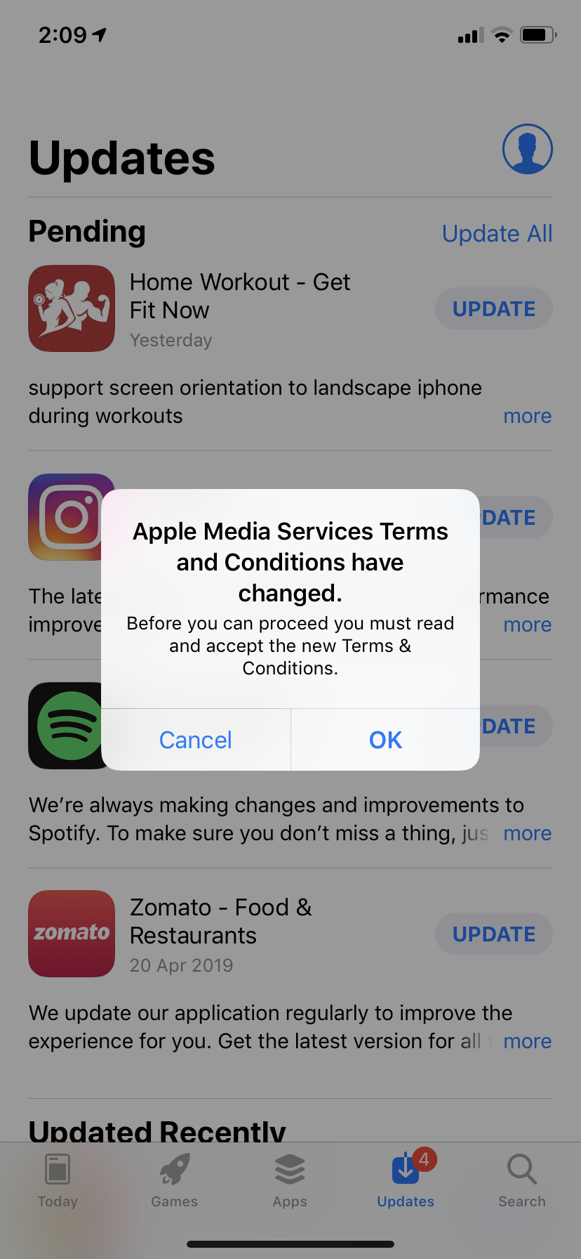 When I was trying to download some apps from App Store,it appears an appointment of “Apple Media Services Terms and Conditions have been changed”when I read and clicked accept it still keep sending it to me and I can’t download any apps right now......Can anyone help?....