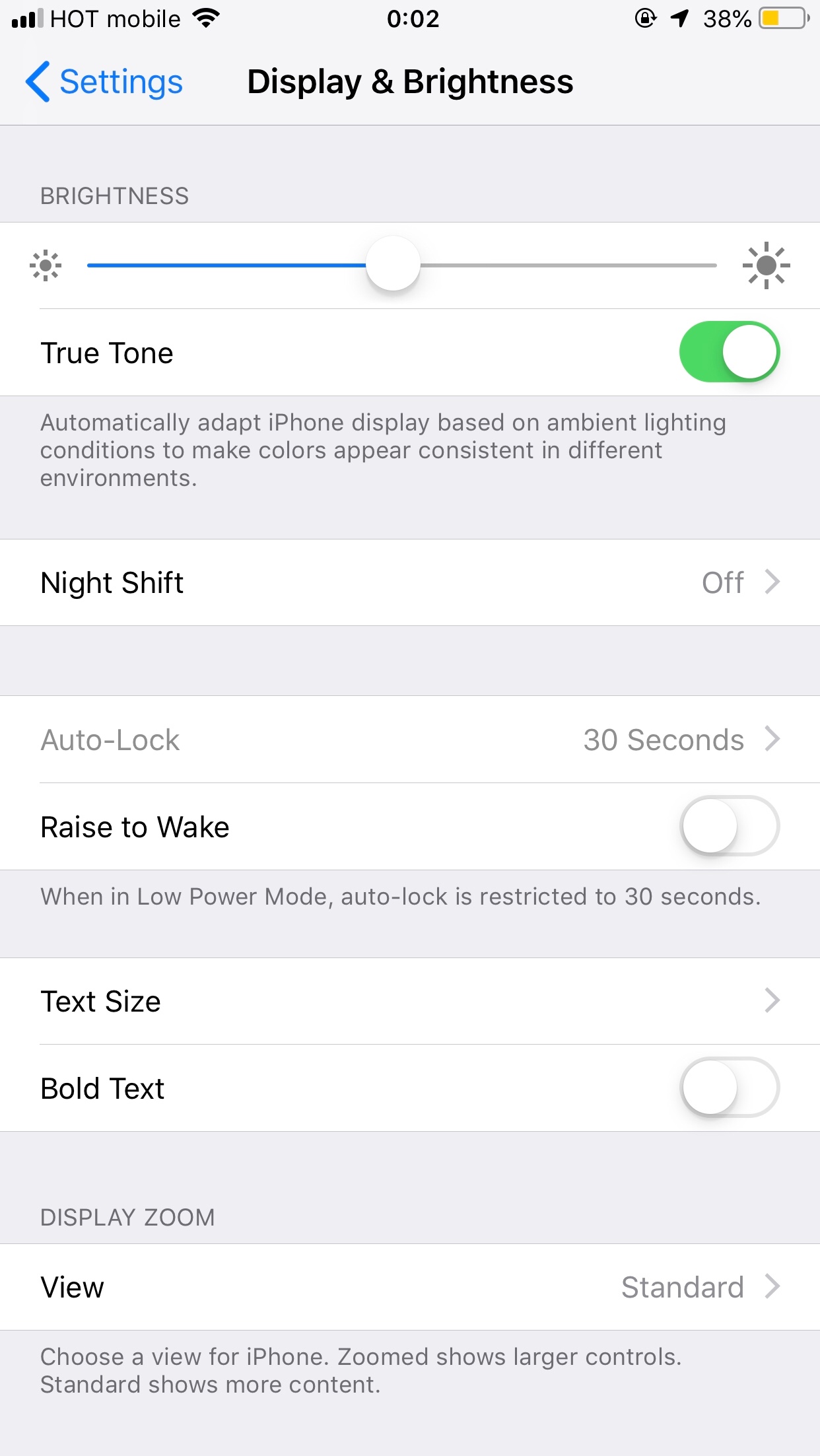In addition to what sberman is referring to, when you look at your battery icon, you can see that it is a yellow color, which tells you that you are in Low Power mode. Just another little hint to remind you that you are in low power. And the text in the phone just below Raise to Wake explains why you cannot change it and why it is set at 30 seconds.