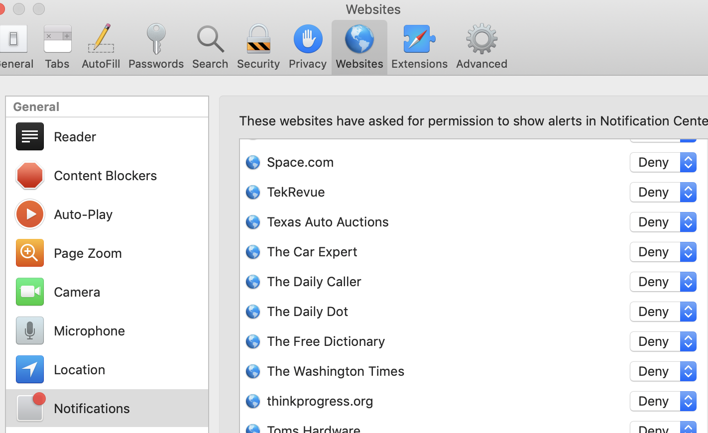 Obviously I can change the alert style to "None" but I'd like to literally remove it from the list, and also remove specific websites I accidentally allowed to notify me.