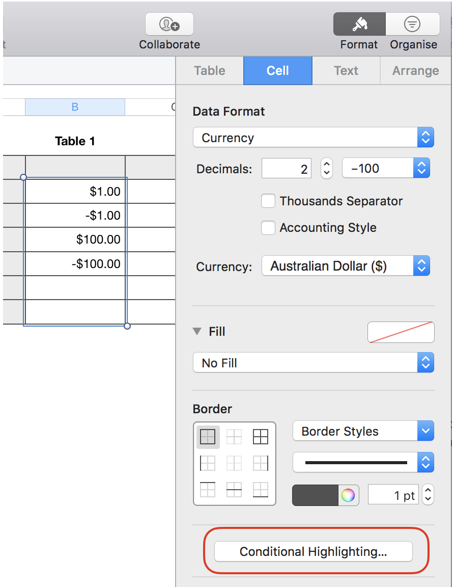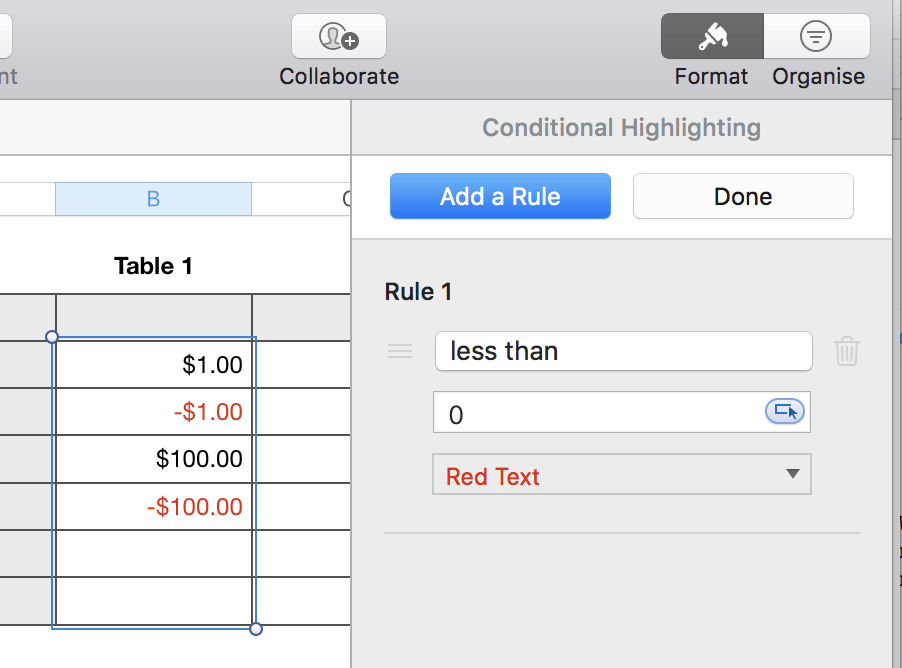 This question might need a Numbers Whizz to answer. I have a large spreadsheet and in some columns where the calculation is a negative number in sterling I get what I want to see which is a minus followed by the pound sterling sign and then the value. Clearly any positive calculation is in black text so it is easy to see at a glance what is positive and what is a negative value. What I do not understand is that I also have calculations in the same sheet where the negative sterling value is all in black so it is a black minus sign black pound sterling sign and black value. If I go to the Cell tab and select Currency I am given the option, alongside the number of decimals I want, of two choices for negative numbers which are red. One is just the value in red and the other is the value in brackets in red. Can someone tell me why I am not given the option of a minus sign followed by the currency symbol and the value all in red so that all negative numbers in the sheet are consistent in style ? Thanks.