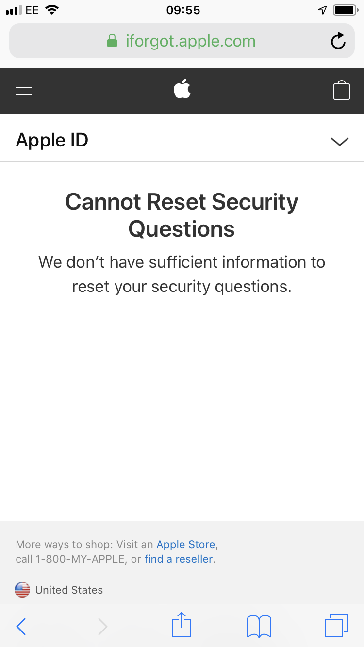 Thank you but it comes up this? I need to take find my iPhone off an old phone but when I try to do it it comes up with the security questions and I can’t answer them. Then when I try to reset them it comes up with this. If I phone apple can they do it or something over the phone?