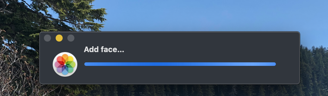 I can no longer see photos in the People section, all the faces are there but all the photos will not load, just a loading spinner appears. When I try to manually add a face to a photo a pop up appears saying "Add Face..." and the whole application become unresponsive, I need to force-quit to get it working again.