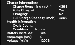 I noticed that the difference between the battery charge remaining is lower than the full charge capacity. I know that is normal but the difference is pretty high (214 mAh). This doesn't seems to be normal, right? This difference is pretty similar to the difference that my mid 2013 MacBook Air (which battery has about to 500 cycles).
