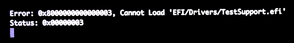Error: 8000000000000003, Cannot load 'EFI/Drivers/TestSupport.efi'
