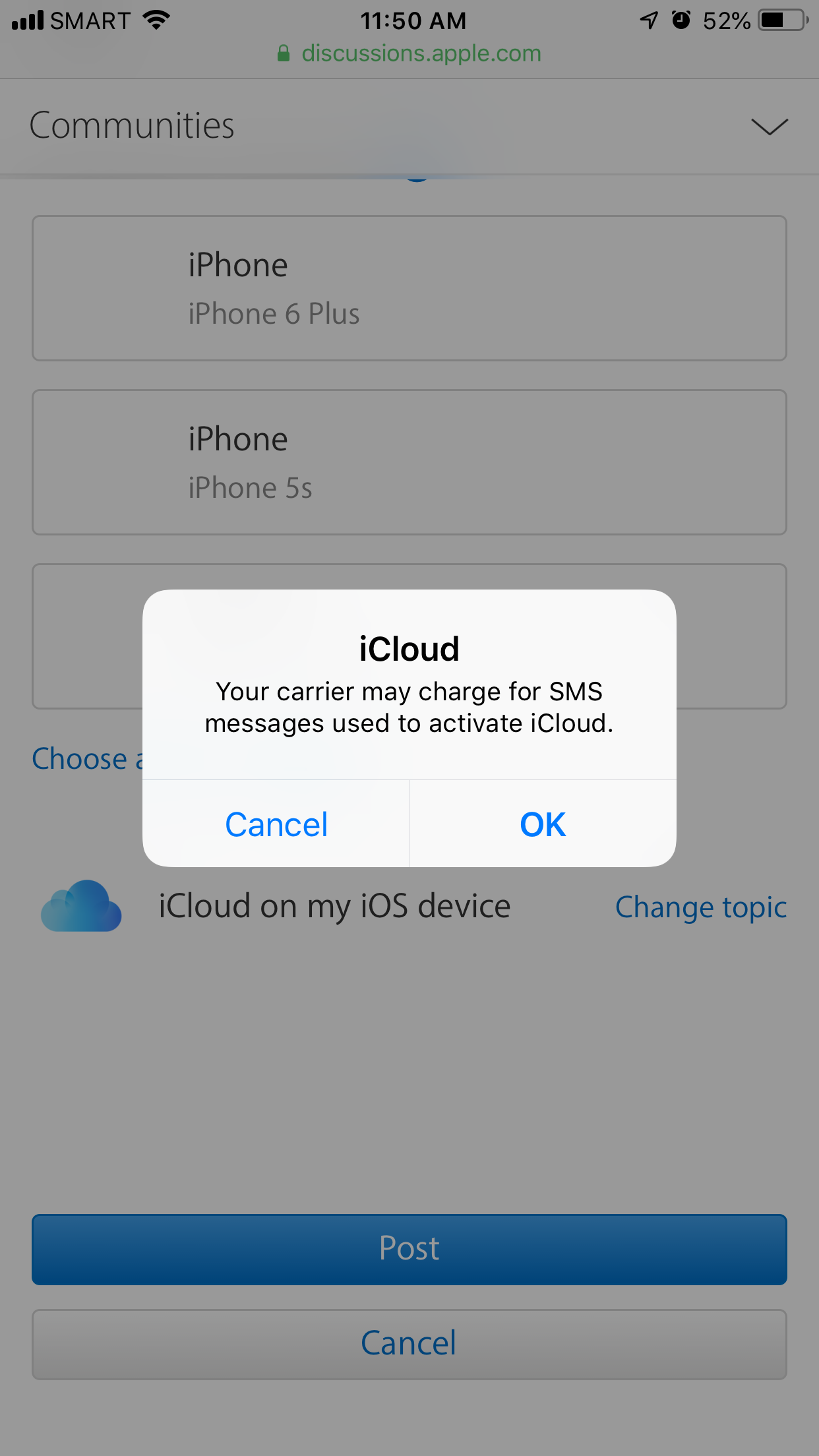 "your carrier may charge for sms messages used to activate icloud" site:discussions.apple.com