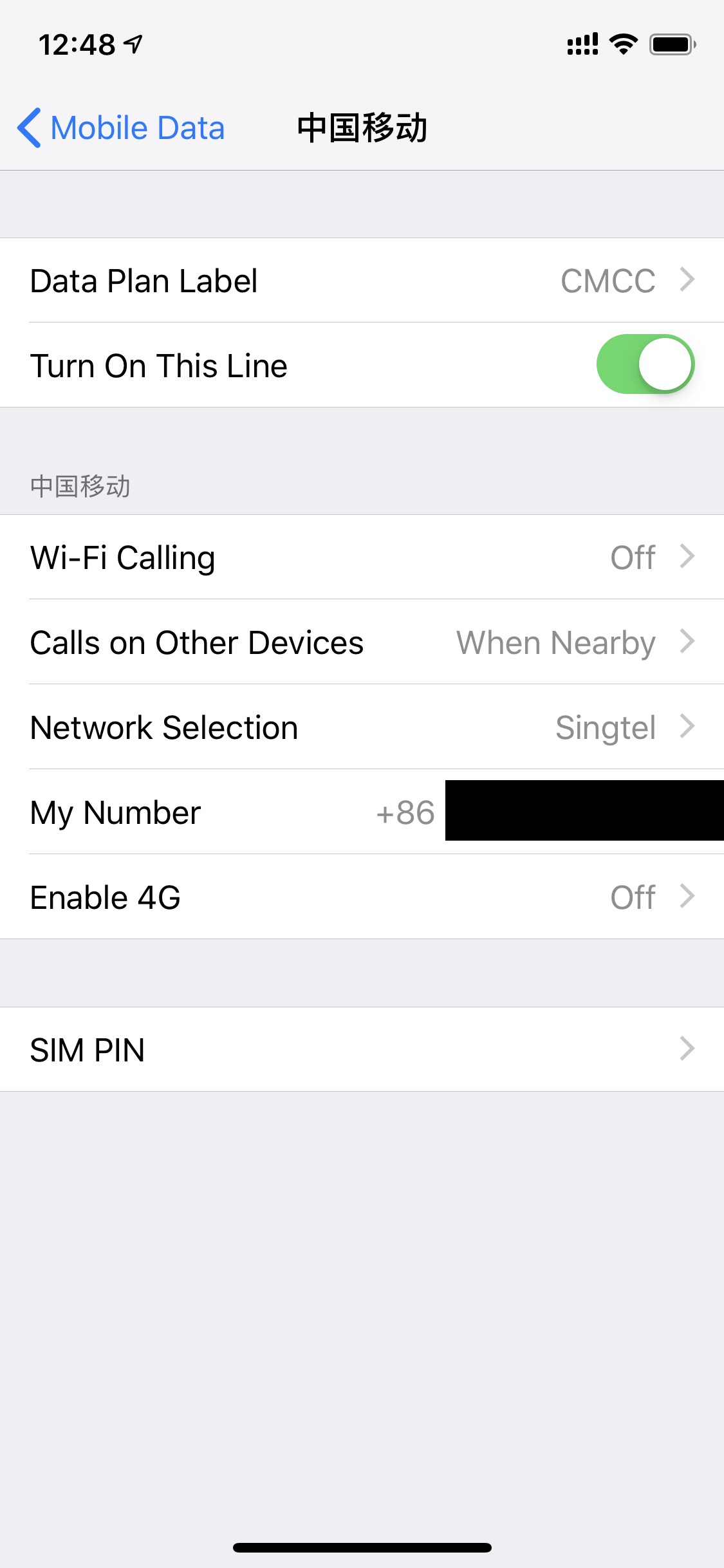 My XS, eSim using Singapore's M1, physical sim use CMCC.