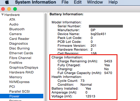 When that utility opens, look in the left-hand pane that lists contents and select "Power." The main pane will show power data. The part we need to evaluate your battery is outlined in this screenshot: