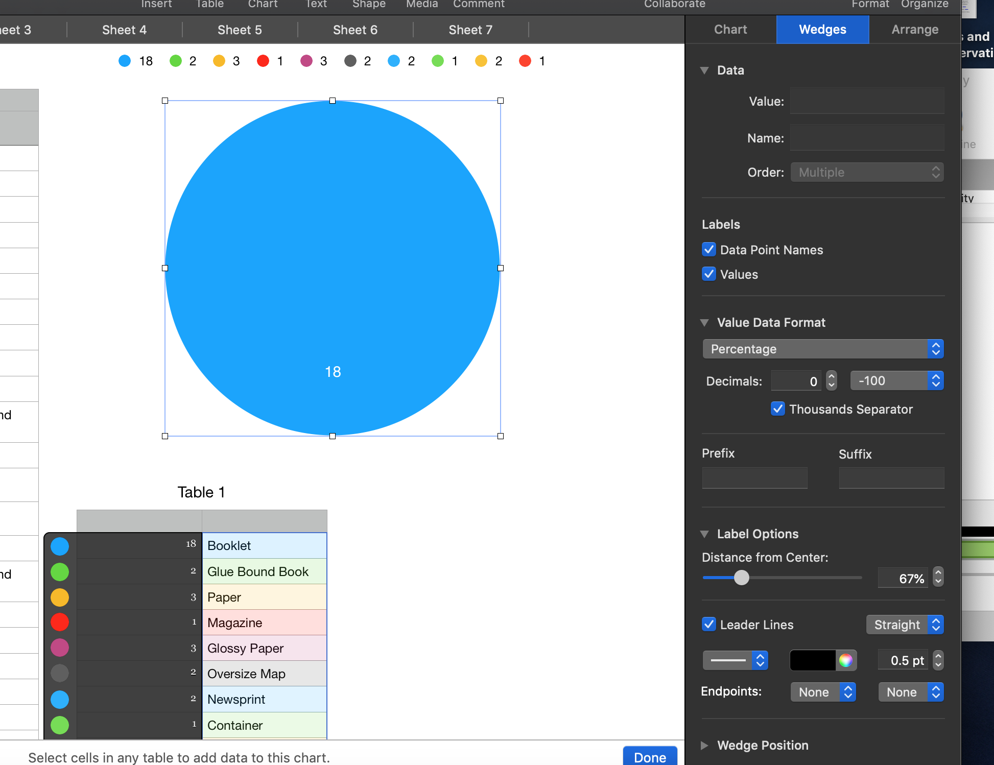 For some reason it is only displaying the first wedge color and it is taking up the whole chart.