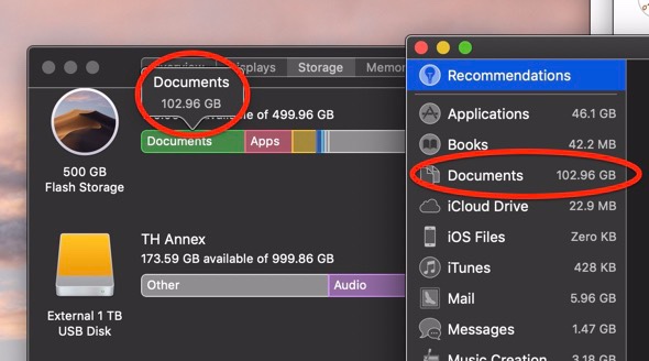 information about system says folder Documents is 12Gb. but when i press "Manage", finder shows it's actually about 25 Mb. Green - Documents. I miss 12 Gb on my 128 Gb Air. How can I make it really 25 Mb?