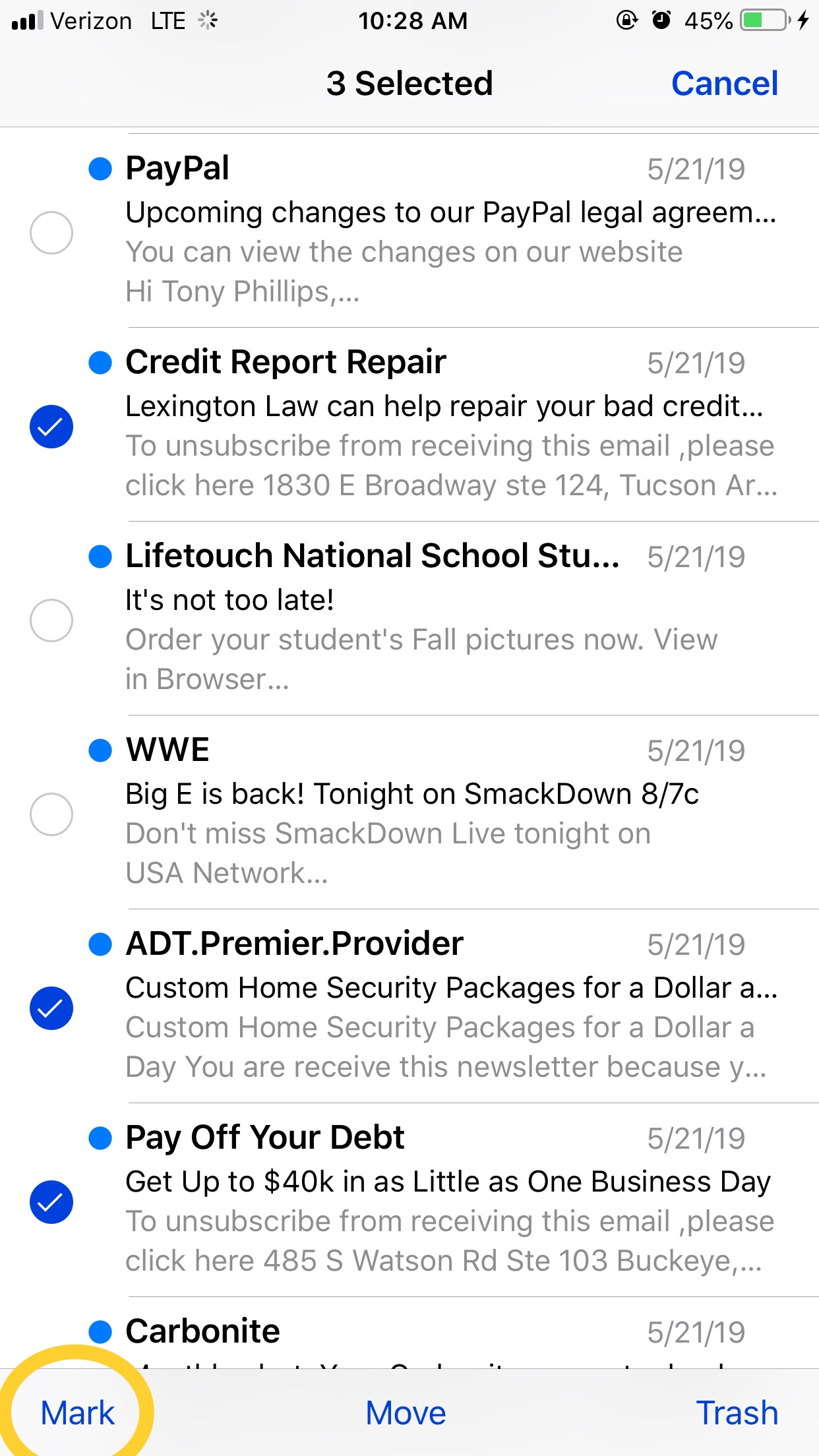 First, let’s mark the emails from senders we don’t want to see anymore. Select edit.
