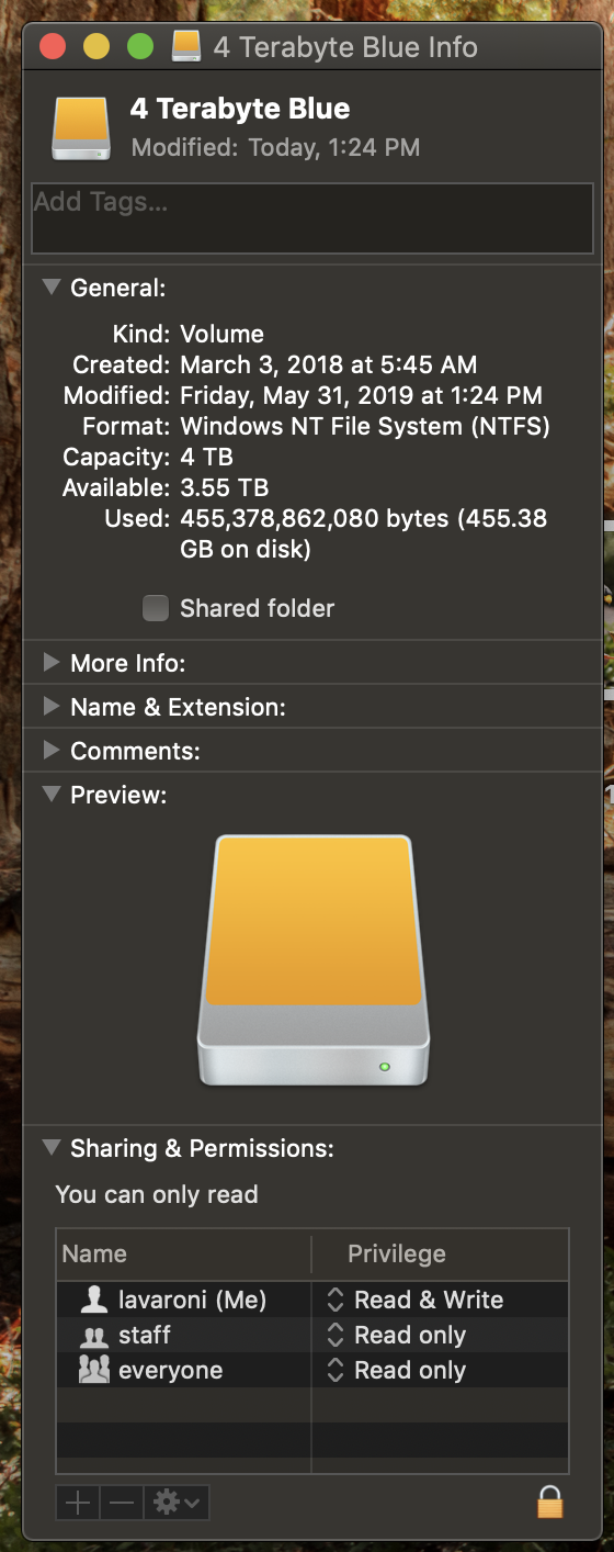 Seagate external drive is read/write on one MAC and read only on new MAC