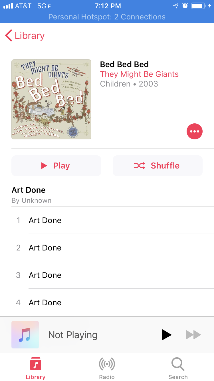 When syncing music locally, over USB to my Mac, some albums are showing all the song names as "Art Done". See attached screenshot.