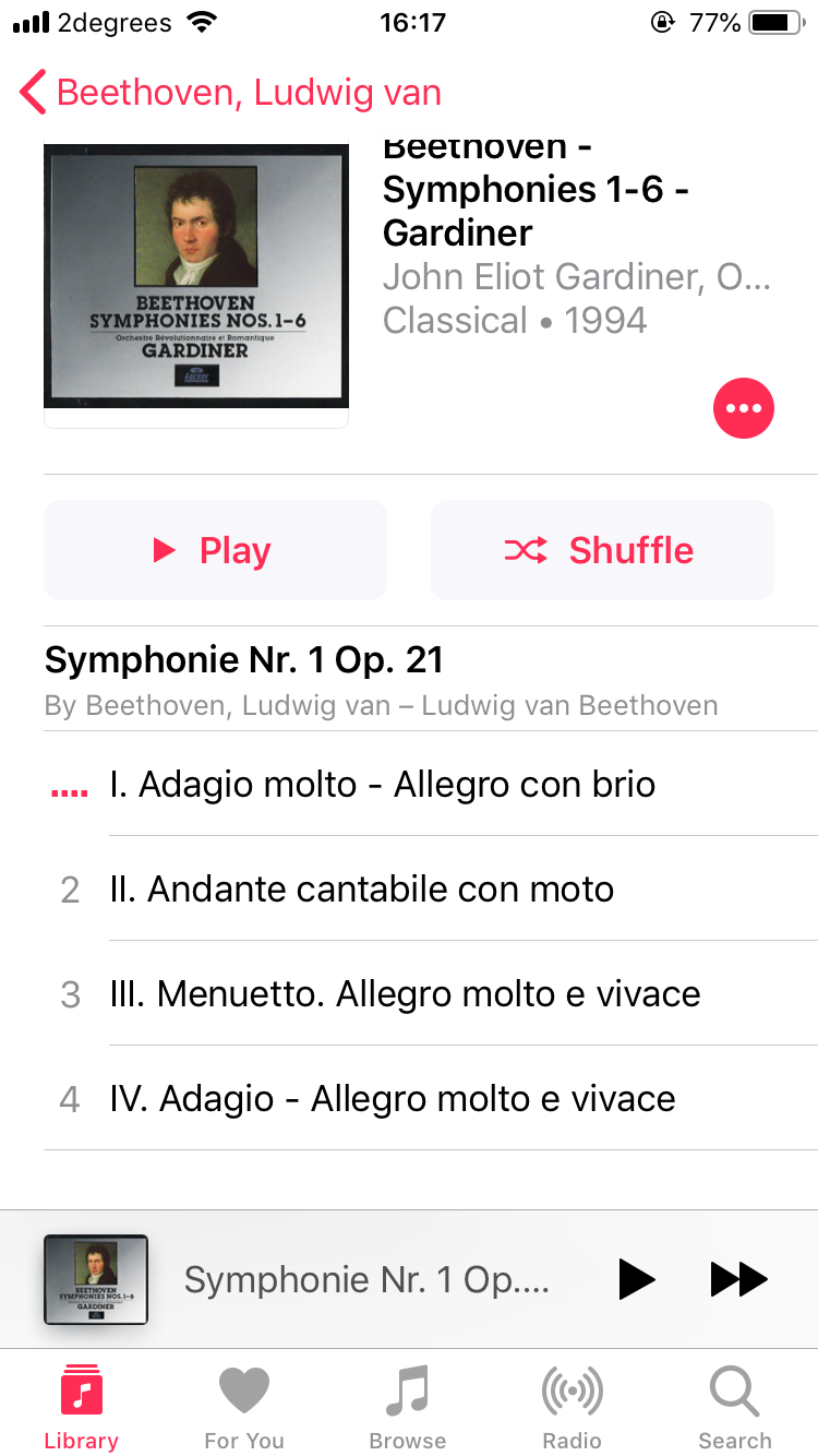 In the Music app on iOS, this behaviour is not replicated, with it instead shuffling individual tracks regardless of whether they belong to the same "Work":