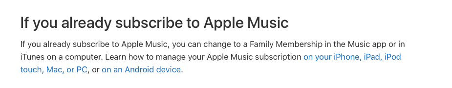 Individual joining Family music streaming subscription