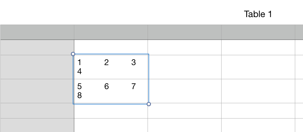 There used to be a neat trick you could do to convert text into a table just by copy-pasting it into an empty table with tabs as cell markers. It seems like either I have something disabled, or the newest version doesn't allow for that anymore. What happens when I post tabbed text into a table (in both Numbers and Pages) is that it all pastes into the same cell, but with the tabs inside the cell.