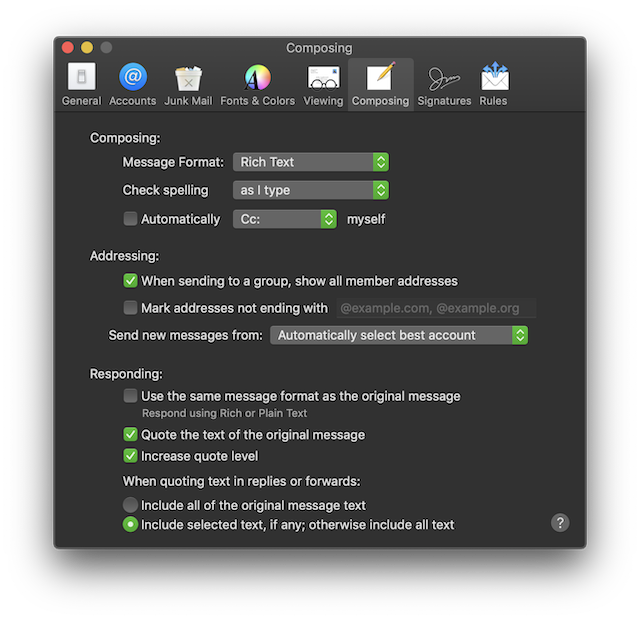 Second, I have several text replacements that I setup thru System Preferences, Keyboard, Text whereby two letters are replace by full words. When I try to use them in Mail, the two letters are not replaced with the words I specified. What else do I need to do in order to make this work?