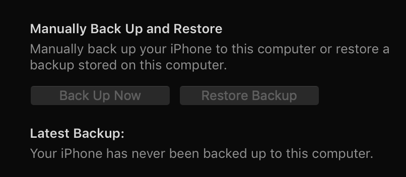 What if I wanted to back my phone to my mac using iTunes I follow all the steps, but the "backup now" button is greyed out. How do I fix this?