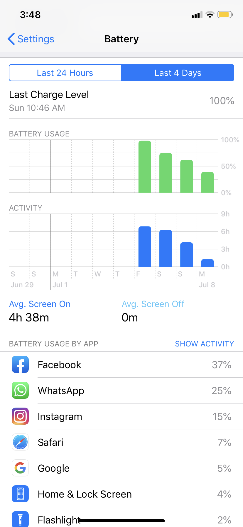 This is how the usage has been. But none of these 3rd party apps are the case at all. Because both the times where I did the reset from phone and iTunes I’ve let the phone in standby without installation of any apps for roughly 5-6 hours. During that time the battery drains the same way and under usage it shows nothing.