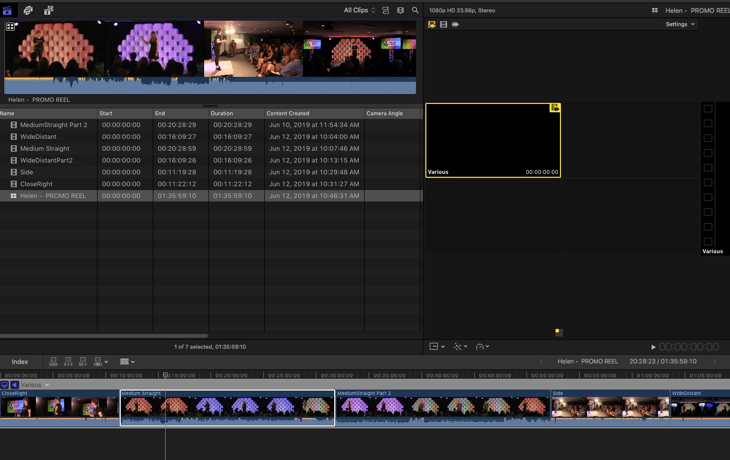 I have a 5 angle project and some of the angles spread across different clips. Another words the main angle has a part 1 and part 2. Multicam is not ordering them correctly. Its treating parts 1 and 2 as separate angles. At least thats what I think is happening. In the past when I added in and out points in this situation I couldn't see all the footage in the timeline. It was hard to keep straight.