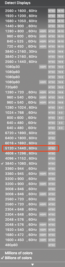 I remember reading somewhere the apple actually had an update for this monitor: LG 34BK95U-W UltraFine 34, a monitor that apple is also selling on their store website I believe. This monitor has a resolution capable of 5120 x 2880 at 34 inches. My guess that's where the "5120 x 2880" support is at that monitor size.