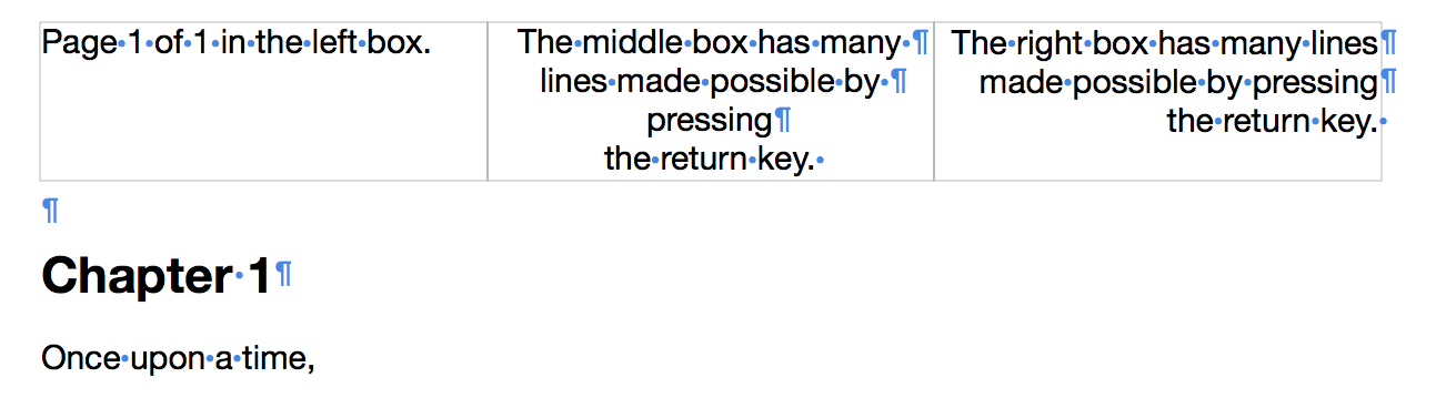 Here is a Page Header with nothing in any box, with the cursor in the right box ready to receive text: