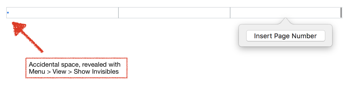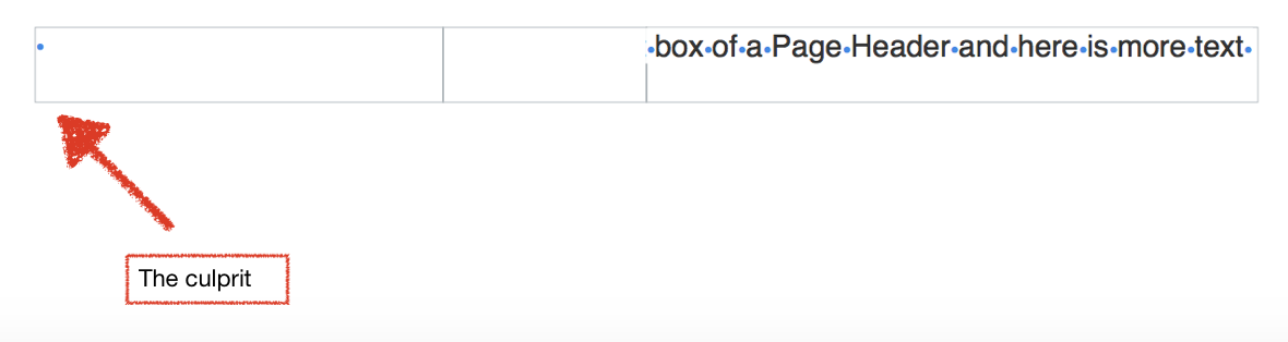 Here is a Page Header with an accidental space in the left box, with the cursor in the right box ready to receive text.
