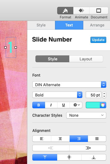 My slides have a white background. When I add slide numbers, you can't see them because the numbers are also white. How do I change the color of the slide numbers to black or any other color?