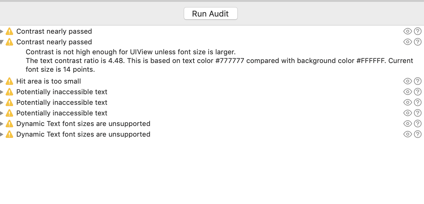 Accessibility inspector contrast issue