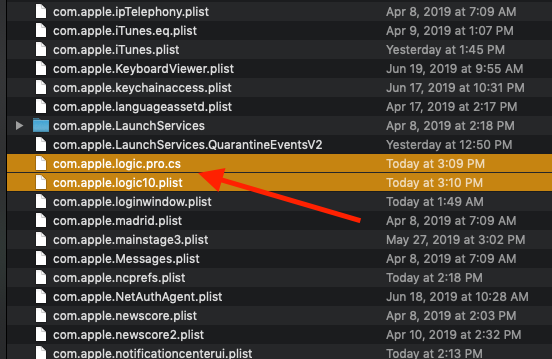 4. Remove the "com.apple.logic10.plist" file from the Preferences folder.