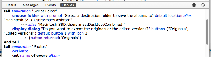 I'm having some trouble with this Applescript, but it's the only way so far that I can figure out to export my smart albums to a directory structure. It works sometimes, but much more often than not, I am met with this error: