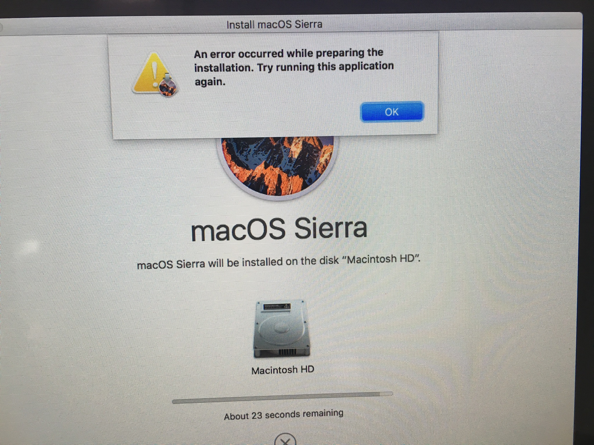 i can’t seem to just reinstall Mac OS Sierra either as it says an error occurred while preparing the installation