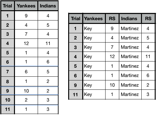 The cells in the "RS" columns below are linked to columns of cells on another sheet, where I can just put a link in the first cell and drag down to fill out the rest.