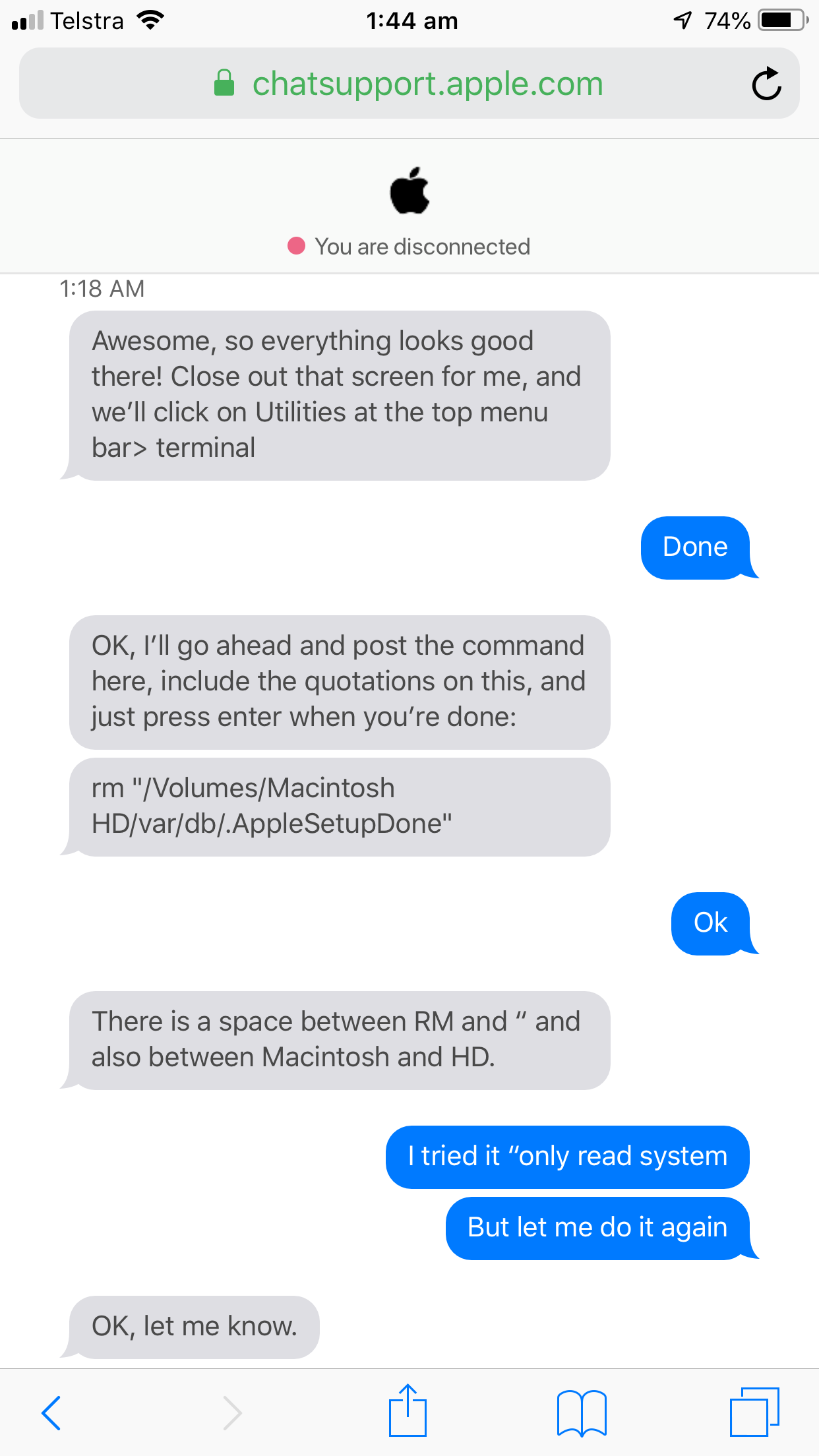 I tried Command S and then reached to the file AppleSetupDone. But it is not letting me remove the file. It says that it is a read only file system. I have followed all the specific commands. Please help.