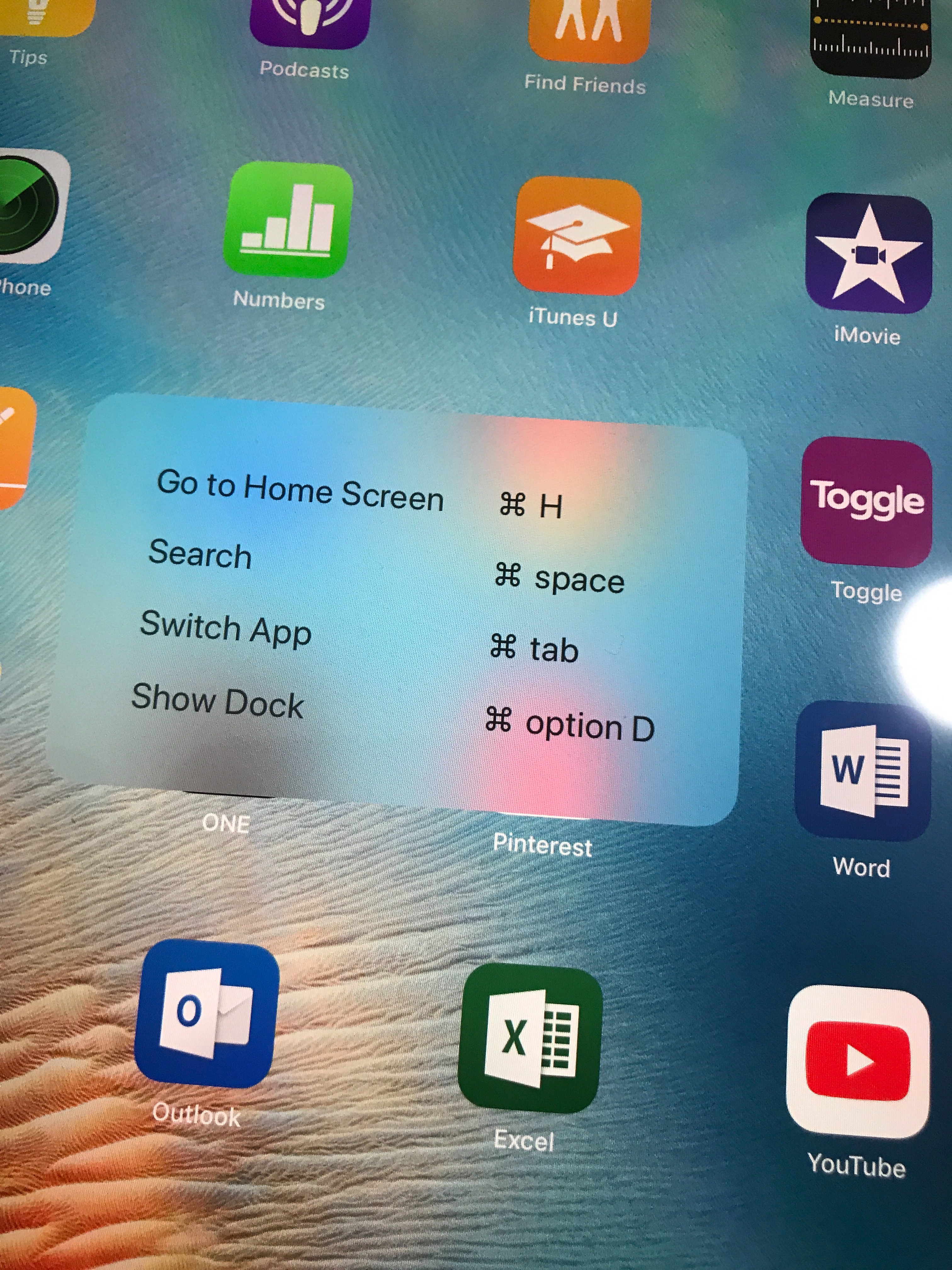 Looks like keyboard shortcuts. If you have a BT keyboard paired, try pressing the command+H keys as suggested.