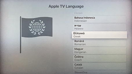 When I turn on the Apple TV 4K for the first time and I go through the set up process where I pick the language is there greek?