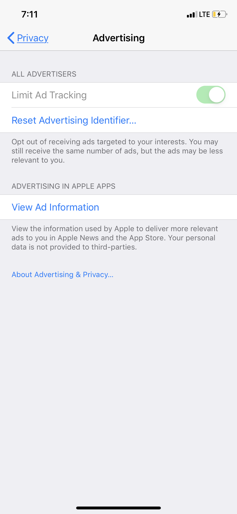 My Advertising Identifier isn’t turning on even after I reset it several times.