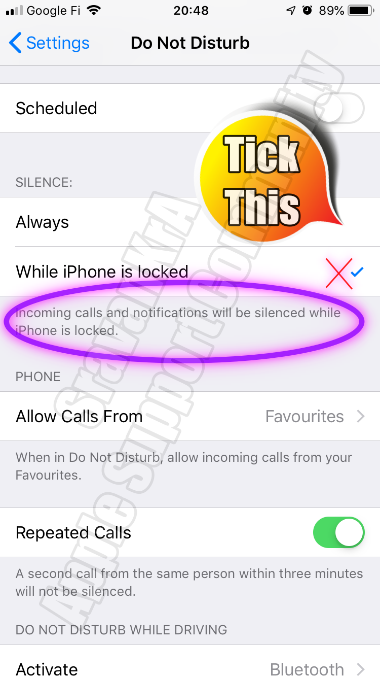Settings > Do Not Disturb > {SILENCE:}