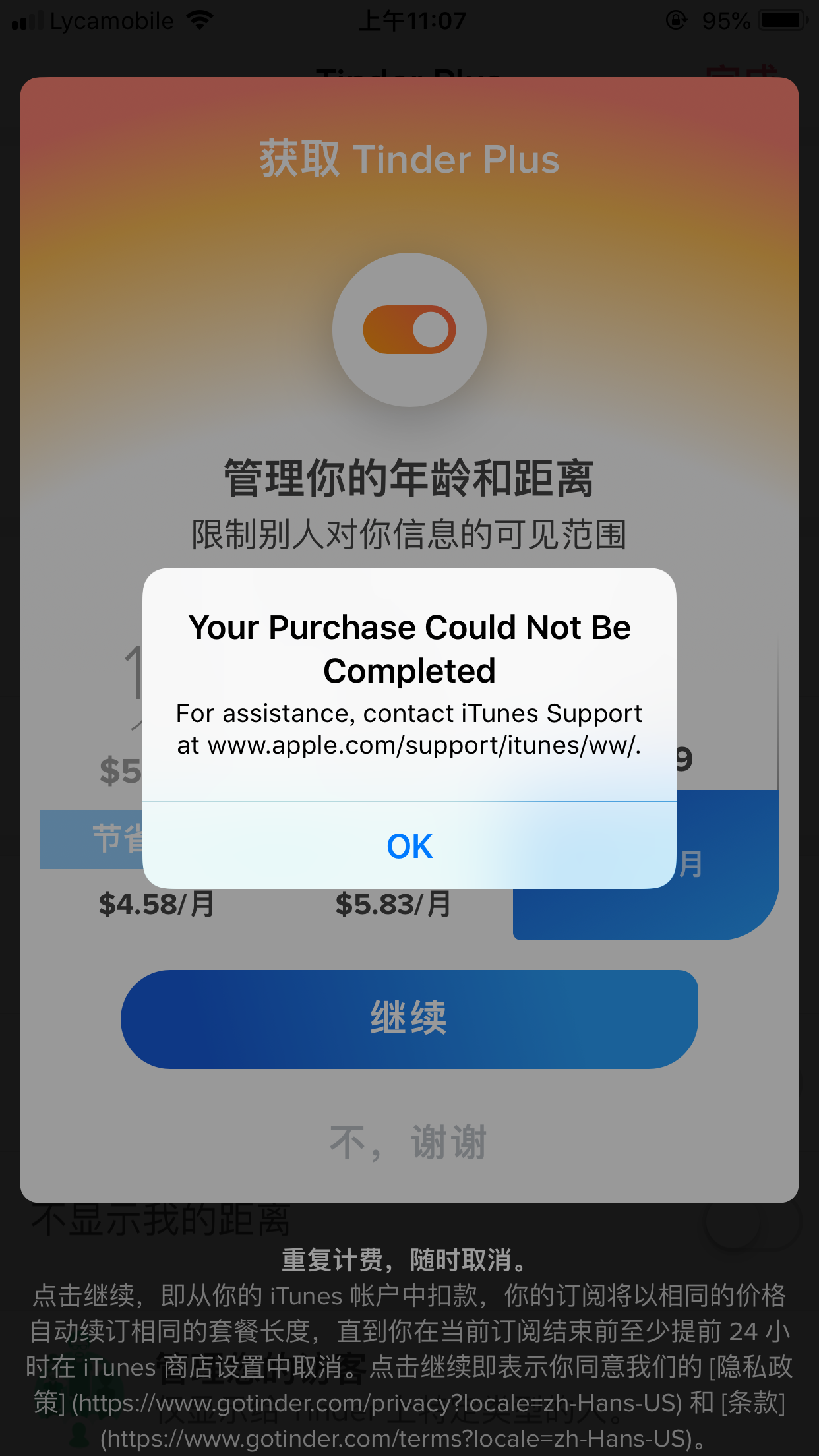 Can’t buy tinder plus which is a membership on tender