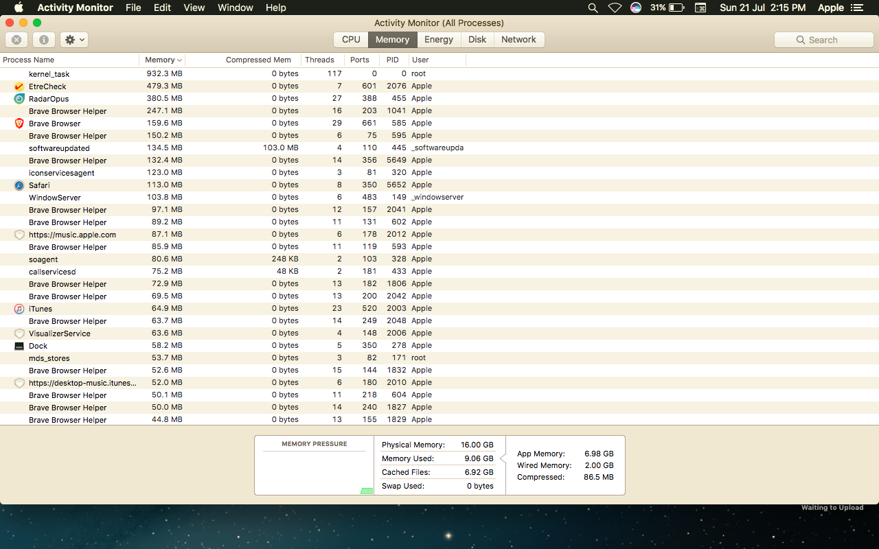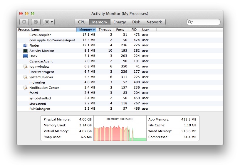 Look at the color and height of the Memory pressure graph. low and Green is good, High and Red is bad.