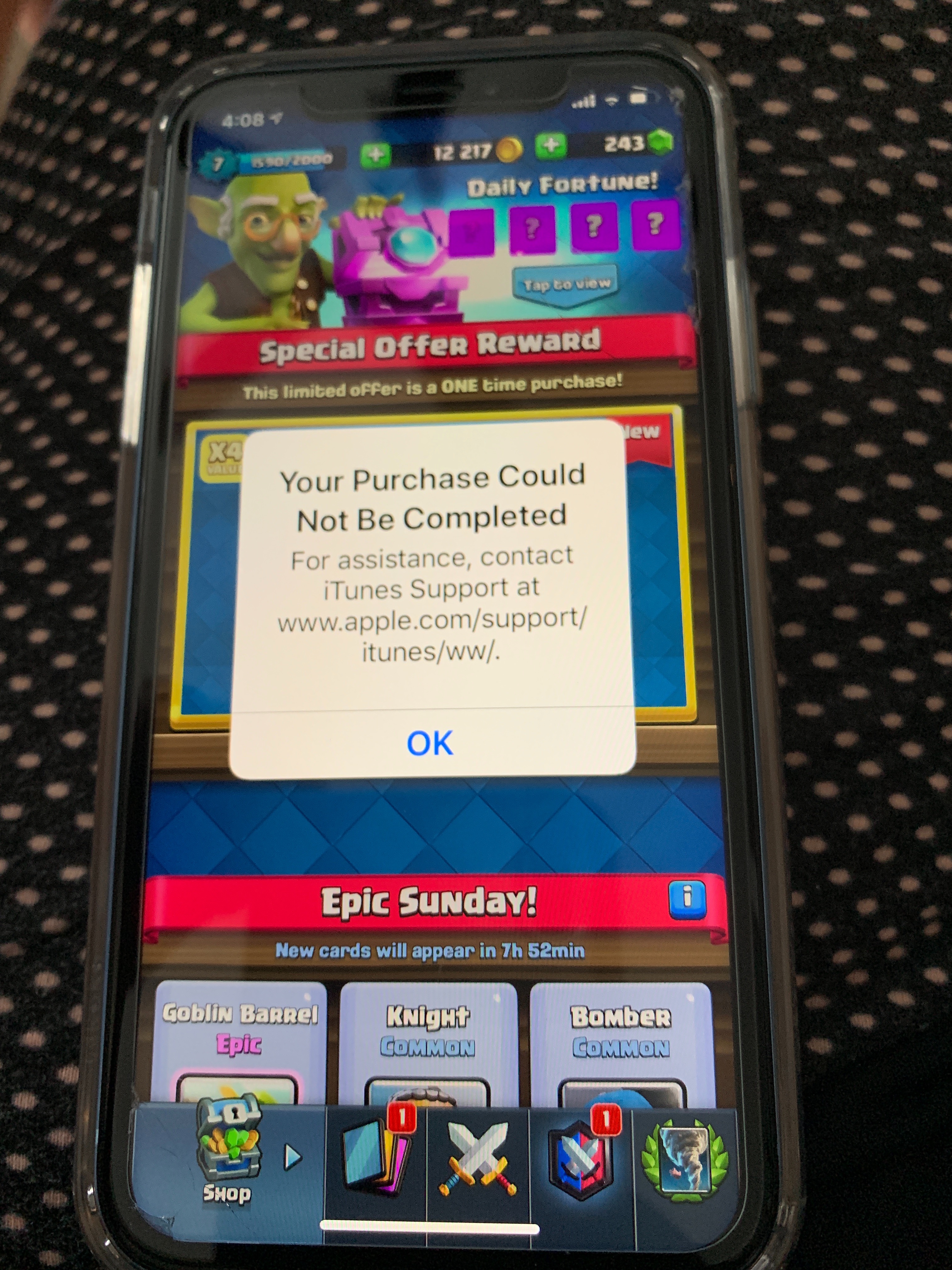 Also saying I can’t connect to iTunes store