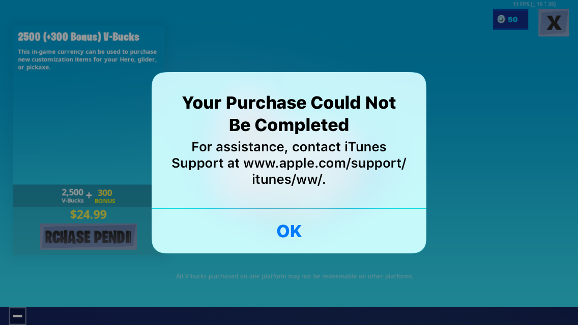How i fix this problem. When i go to buy an in app purchase it keeps saying. Your purchase can not be completed
