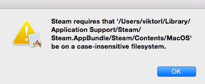 Case Sensitive Filesystems not supported on Mac - Mac Issues - Knowledge Base - Steam Support