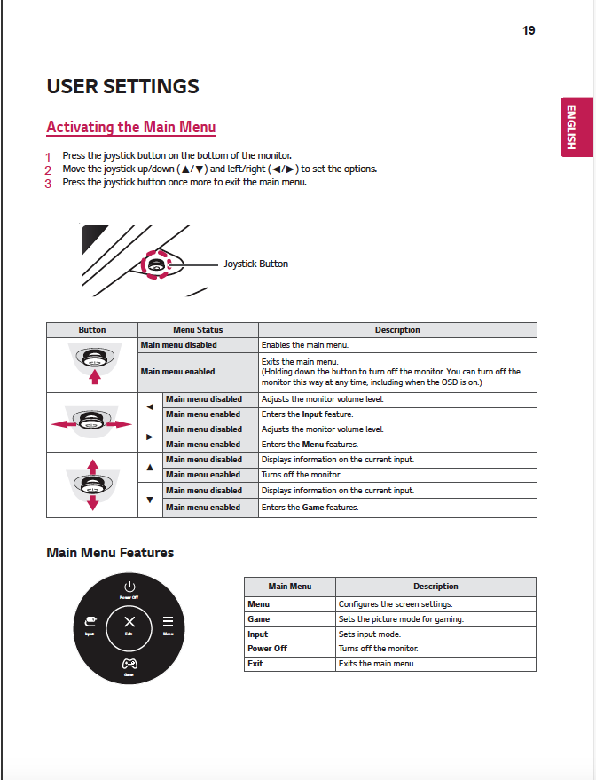 According to the manual for a LG 32UK50T the menu button o the bottom is a joystick button which you move from side to side to control OnScreen Menus